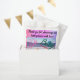 ¿Estás planeando una ducha de bebé para alguien que espera una niña? Este encantador diseño presenta un encantador tema oceánico con una variedad de criaturas submarinas, con la fecha de la ducha destacada. En la parte superior hay un espacio dedicado a la etiqueta "Baby Shower" para la futura madre. El diseño captura la esencia del océano con elementos deliciosos como una almeja azul y rosa, una tortuga verde, una estrella de naranja y un cangrejo de naranja rojizo. En el lado izquierdo, las palabras "Es un" están escritas en rosa, mientras que "una ducha de bebé" sigue, con "un bebé" en verde y "una ducha" en rojo. Una divertida ballena azul nada alegremente entre las letras "a" y "baby". Para completar el diseño, el fondo está decorado en un suave tono rosa, complementado por un borde azulado-violeta en el lado derecho, lo que añade el encanto general de este agradable tema. Encima de la bolsa de favores hay un agradecimiento usando las palabras "¡gracias por duchar a nuestra princesa con amor!
