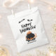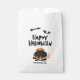 Personalizable y singular bolsa de favores de Halloween con ilustraciones de un caldero, murciélagos y tipografía moderna. El acento perfecto para tu fiesta de Halloween.
