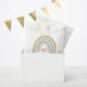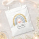 Cute acuarela boho arco iris bolsa de favores con tu nombre de ducha bebé. Mostaza azul rosa estilo arco iris neutro. Para los favores de dulces de la ducha de bebé.