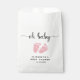 Bolso de favores de fiesta para tu ducha de bebé con "oh baby" en un guión elegante con toallitas y una acuarela rosa de pies de bebé. Personalice su nombre y fecha de ducha.