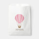 Las valiosas bolsas de favores para la ducha de bebé tienen un ilustracion dulce de un bebé dentro de un globo de aire caliente.