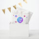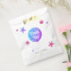 Complementa tus favores de primer cumpleaños de tu chica con estos lindos bolsos de agradecimiento. Los colores morado y rosa del globo y las estrellas son divertidos y enérgicos. Personalice el texto con su propio texto. Ilustrado y diseñado por Patricia Álvarez.