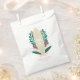 ¡Surfs up! Ducha de bebé con temática tropical para el surf gracias a la bolsa con una tabla natural de granos de madera y hojas tropicales en tonos rosa y verde.