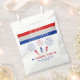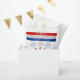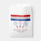 Blancas rojas y el 4 de julio lanza petardos en ducha de bebé Gracias bolsa de favores en rojo, blanco y azul. El diseño muestra las palabras 'A RED WHITE AND DUE' en tres rayas, petardos y fuegos artificiales junto con la frase 'Gracias'.