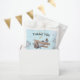 Send guests home with a sky-high thank you! Featuring a charming vintage airplane, soft blue skies, and floating stars, this sweet aviation design ties perfectly into a “time flies” first birthday theme. A thoughtful way to thank everyone for celebrating your little pilot’s big day.