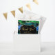 Esta elegante y glamorosa fiesta de 16 años de cumpleaños, bolso de agradecimiento, presenta un fondo de mármol agate azul y verde con falsos acentos purpurinas de oro. El texto combina el guión manuscrito y las fuentes sans serif modernas para un aspecto elegante y sofisticado. Las secuencias y la textura angustiada crean la mezcla perfecta de moda y de grunge.