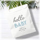 Personalizable simple y moderno ducha de bebé favorece las bolsas, en azul y blanco con las palabras "hola bebé".
