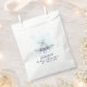 Blue Polar Bear Boy Hearts Winter Baby Shower Favor Bag. Celebra que tu pequeño venga con un precioso cachorro de oso blanco sobre una franja de pino con conos de pino y un lindo arco azul. Personalice el texto para su perfecta decoración y vajilla de fiesta con ducha para bebés.