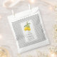 "Flores de limón cítricos: bolsa favorita de la boda blanca gris amarilla". El patrón de diamante gris y blanco hace que los limones amarillos se vuelvan un lugar sencillo, elegante e intemporal para una boda clásica. Artista y diseñadora con licencia internacional, Audrey Jeanne Roberts pintó a mano la obra de un grupo de limones con hojas y flores y el antiguo patrón de mini impresión de azulejos de inspiración vintage en gris claro y blanco. El texto de caligrafía de la escritura tipográfica dice: "Nuestra celebración Boda". Derechos de autor artísticos, Audrey Jeanne Roberts todos los derechos reservados.