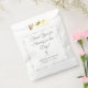 El diseño presenta un fondo blanco para su mensaje personal de gratitud, un tipo de letra de color plateado. A continuación se muestra la imagen de una cruz de color plateado, mientras que los nombres de la novia y del novio, más la fecha del boda, aparecen en la parte inferior. El diseño de un delicado borde rodea el espacio. Diseñado para coordinar con la "Suite Boda simplemente católica". También disponible en color rosa champán.