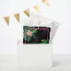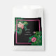 Una moderna pero retro temática neón rosado botánico sobre fondo negro. Un bonito diseño boda ideal para el verano. Diseño perfecto de plantas tropicales de neón rosa con palmeras, flores rosadas de Hibiscus y flores Plumerias Frangipanis. Los colores negro, rosa y verde dominan este diseño de neón rosa tropical. La moderna tipografía caligráfica contrasta perfectamente con el diseño de temática boda negro y rosa. Un elegante diseño de bolsos de bienvenida de boda con elementos modernos y sencillos. También están disponibles artículos de papelería para bodas y otros formatos de invitación para bodas.