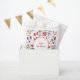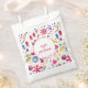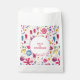 Una moderna pintura de acuarela bohemia de flores y hojas de colores vivos diseminados en un fondo blanco. Magnífica coordinación de bolsos de favores con texto personalizado para coincidir con tu celebración.