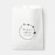 Gracias a los asistentes de su boda con esta bolsa de favores blanca de gran tamaño que presenta un diseño simple de coraje de color berenjena y escritura estilizada junto con los nombres de la novia y el novio impresos en letras negras. Personalice su bolso de favor editando y reemplazando nombres.