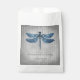 Pase los favores matrimoniales de sus invitados con un juego de Bolsa de Favor de la Boda de la Dragoniófila con joyas. El diseño de las bolsitas presenta una libélula con guijarros y vigas en un fondo vintage de rayas angustiadas. Personaliza con los nombres del novio y la novia junto con la fecha del boda. También hay material de boda adicional disponible con este diseño.