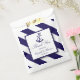 Estas bolsas de regalo son perfectas para cualquier pareja que planee un matrimonio romántico junto al mar. El diseño presenta un caprichoso motivo de ancla azul marino sobre una marina náutica y un fondo de rayas blancas. El diseño sencillo puede ser personalizado para adaptarse a su evento especial y será la bolsa de regalos perfecta para cualquier fiesta con temática náutica, incluyendo duchas de novias, compromisos, duchas de bodas, fiestas de cumpleaños y mucho, mucho más.