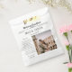 Celebra tu día especial con nuestra elegante bolsa de favoritas de boda, inspirada en el diseño de un periódico vintage! Perfectamente diseñado para parecerse a una portada clásica, esta bolsa le permite personalizar los nombres de la novia y del novio, la fecha del boda, e incluso añadir una hermosa foto, lo que lo hace un conservador verdaderamente único. El bolso contiene un sincero mensaje de "Gracias", que lo hace ideal para expresar gratitud a sus invitados por asistir y celebrar su día de boda. Ya sea que esté lleno de dulces, productos horneados o pequeñas muestras de aprecio, esta bolsa de favores es una manera reflexiva de dejar una impresión duradera. Perfecto para temas rústicos, vintage o elegantes de bodas, estas bolsas hacen un recuerdo eterno para su día especial. Editable y personalizado para reflejar su historia de amor única, seguro que deleitarán a sus invitados y se convertirán en un querido placer!