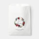 Las bolsas de regalo de boda con estilo de jardín chic dicen gracias a los invitados con estilo elegante. Las bolsas presentan una corona de acuarela de follaje botánico verde y flores de color rosa, burdeos marsala y azul marino, enmarcando su mensaje personalizado (mostrado con "amor y agradecimiento"). Personalice con sus nombres y fecha de boda debajo en letra elegante. Diseñado para coordinar con nuestra colección de bodas y eventos Radiant Bloom.