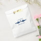 Bolsa de regalo boda con silueta de tiburón azul marino, nombres de pareja y corazón.