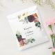 Los floridos ramos de otoño le dan un encanto rústico elegante a este diseño de bolsos de boda. Personalice la plantilla de texto con los nombres de la novia y del novio y la fecha de boda. Este diseño también es una opción maravillosa para fiestas de compromiso, duchas de novias o celebraciones de aniversario. Las flores incluyen el vino de Borgoña y las rosas rosas de color rosa, los crisantemos naranjas, los pargos blancos y el eucalipto verde verde azulado.