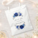 Elegante bolso de favores matrimoniales de color azul real blanco blanco azul real con elegante ramo de azul real, marina, plata, flor rosa de color blanco puro y hojas de eucalipto verde salado. Comuníquese conmigo para obtener ayuda sobre la personalización o si necesita cualquier otro producto con este diseño.