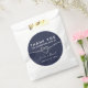 Elegante, moderno, minimalista boda azul marino personalizado gracias bolso de favores con corazón de cuerda de plata y escritura simple de caligrafía.