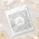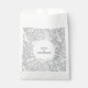 Bonito, elegantes siluetas botánicas florales de naturaleza, follaje blanco, hojas y flores sobre un fondo gris plateado. Magnífica coordinación de bolsos de favores con texto personalizado para coincidir con tu celebración.