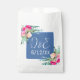 Bolsos personalizados de boda con las iniciales de la pareja con acentos florales rosados bonito y centro azul con letra blanca. Elegante tema boda floral.