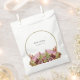 Este diseño presenta un ramo rústico de flores silvestres. Un marco simple de círculo dorado rodea el texto. Los tonos rústicos de color rosa y floral completan la vegetación de las hojas. Los tonos dorados lo unen todo para crear un ambiente rústico y campestre en el jardín de bosques. Las rayas doradas y rosas cubren la parte posterior del diseño. Elegante diseño de bolsos de favoritas de boda con elementos modernos. También hay disponibles invitaciones de boda coincidentes y otros artículos de papelería.