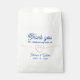 Elegante, moderno, minimalista blanco y azul boda gracias bolsa de favores con corazón de cuerda dorada y escritura de caligrafía simple.