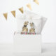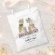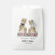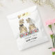 Dé la bienvenida a sus huéspedes con este divertido y colorido tema de los dinosaurios de flores silvestres boda gracias a los bolsos de regalo con la novia y novio de los dinosaurios y follaje de la jungla Jurásica. Fácil de personalizar con los nombres de novios y novios, la fecha boda en escritura moderna de tipografía. Graciosa novia y novio T-Rex y hermosos ilustraciones de flores silvestres acuáticas en tonos azul violeta verde amarillo y naranja. Único dino original y obra de arte floral de verano de la artista Catherine Sweetman