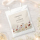 Nuestra Bolsa de Favor de la Boho Wildflower, personalizada con los nombres de la novia y el novio y adornada con un hermoso marco floral en el fondo, añade un toque elegante a tus favores de boda. Con pastos secos rústicos, hojas delicadas y flores silvestres vintage, esta bolsa es una adición encantadora y práctica a su evento de temática bohemia.