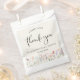 Este bolso de favores de la ducha de bebé color crema claro tiene acuarelas de flores silvestres boho y "un pequeño agradecimiento dulce" en un guión contemporáneo de moda y una tipografía simple. Personaliza con el nombre de la futura mamita y la fecha de ducha.
