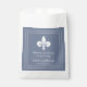 Elegante y sencillo bolso de favoritas de la boda con un flor de lis sobre un polvoriento fondo azul. Este diseño es una elección única para un boda moderno. Fácil de personalizar con los detalles de su boda. Haga clic en "Personalizar" para encontrar más opciones de personalización.
