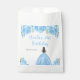 This birthday party favor bag features faux glitter bright blue floral flowers and a beautiful princess with brown hair and an elegant dress. This is perfect for a birthday party.