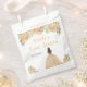 This sweet sixteen favor bag features faux glitter champagne peach cream floral flowers and a beautiful princess with brown hair and an elegant dress. This is perfect for a sweet sixteen birthday party.