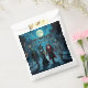 Papel de la fiesta de Halloween favorece las bolsas con arte de ai que representa a una bruja, vampiro, momia y zombi caminando por la noche de Halloween con una luna llena en un estilo genial de libro de historietas.