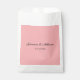 These wedding favor bags feature a crisp white paper bag accented with a bubblegum pink panel, showcasing the couple’s names and wedding date in elegant script for a sweet and cohesive look. Perfect for candy buffets, popcorn, cookies, or small take‑home treats, they coordinate beautifully with the Bubblegum Blush suite and add a charming touch to your reception or dessert table.