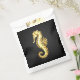 Artístico, poligonal, caballito de mar de chispa, Relieve metalizado dorado sobre fondo negro.