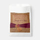 Estos bolsos de favoritas de boda son una buena manera de mantener tu tema de "Caída en Amor" fuerte. Estas bolsas de favores matrimoniales tienen un fondo simulado de patrón burlap con una cinta borgoñosa corriendo a través de la parte inferior que tiene un grupo de hojas de otoño en rojo, naranja, verde y oro con un pequeño naranja dorado que se ve el corazón y un arco de gemelo naranja colgando debajo. La parte superior del área de diseño de la bolsa de favoritas tiene un área de texto simulada de papel Kraft sobre el patrón de burlap. Los nombres de la novia y el novio y la fecha del boda están impresos en el vino de Borgoña y el naranja quemado con letras de naranja arriba que dice: "¡Gracias por compartir nuestro día especial con nosotros!" en todo el top. Si necesita elementos adicionales coincidentes, envíe su solicitud a niteowlstudio@gmail.com o utilice la función de chat Zazzle para ponerse en contacto.