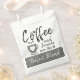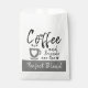 Bolsas de papel en color blanco. El café y los amigos son la mezcla perfecta. Los corazones de amor grises y una taza de café.