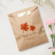Bolsos personalizados de boda de otoño. El diseño presenta hojas de otoño naranjas y una letra de escritura marrón "Caer en amor". Personalice fácilmente con los nombres de la novia y del novio y la fecha de boda.