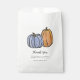 Rústico naranja ilustrado y calabazas azules y texto fácil de personalizar hacen de esta bolsa de favores para ducha de bebé una manera divertida de enviar a los invitados a casa con un regalo después de celebrar gentilmente a la madre para que esté en su ducha.