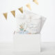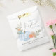 Una bonita bolsa de favores para la ducha de un bebé con "Gracias" en un guión gris bonito con un latido cardíaco, y un ramo acuarela de calabaza azul pastel, flores naranjas y vegetación. Personalice el nombre de la madre y la fecha de la ducha en una simple tipografía gris claro y moderna.