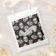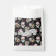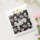 Un colorido diseño de bolsos de favores para las festividades del Día de los Muertos, con una variedad de cráneos decorativos de azúcar con acentos florales y giratorios sobre un fondo negro opcional. Si lo prefiere, la capa de texto 'Feliz Dia de los Muertos' se puede borrar para un diseño de sólo patrones. Busque ID725 para ver otras opciones de color y productos con este divertido patrón.