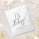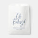 Blue Simple Caligraphy Gender Neutral Baby Shower bolsos de favores con una caligrafía divertida y moderna en colores vivos y sólidos.