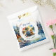 Gracioso bolso de favores para la ducha de bebé de un chico con temática de pesca. Un juego de palabras divertido, Carpa sagrada, es un niño. Pequeño chico lindo con un palo de pesca sentado al lado de su perrito junto al lago, las montañas y los árboles. Éstas tienen un tema azul y verde.