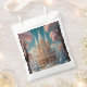Un majestuoso castillo de fantasía surge de un paisaje prístino y nevado, rodeado por un bosque de encantadores árboles rosas. Las montañas cubiertas de nieve atraviesan el horizonte, sus picos bañados en el resplandor etéreo de un sol abrasador. ¿Sabías que en los tiempos medievales, el rosa era considerado un color de poder y prestigio? Las imponentes torretas y batallas del castillo hablan de una rica historia, mientras que las delicadas flores de los árboles circundantes dan a entender un lado más suave y mágico de la fortaleza.