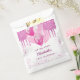 Un fondo blanco. Decorada con tonalidades rosas purpurinas, pinturas que gotean, goteos purpurinas, globos rosa pastel y rosa caliente. Personalice y agregue una fecha, nombre y edad.