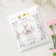 Bolsas de chica Baby Shower Favor con un adorable chica de conejito con flores moradas suaves y texto rosa y morado sobre el fondo blanco. Estas bolsas Favor son perfectas para una encantadora ducha de chica con temática primaveral. Personalizar fácilmente el texto - Kate Eden Art