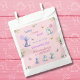 Celebra el primer cumpleaños de tu niñita con esta adorable bolsa de favores personalizada, perfecta para el fiesta de primer cumpleaños de una niña. Estos encantadores sacos presentan bonitos dinosaurios en blues, rosa y lila, sosteniendo alegres globos rosados y lilac con puntos polka pastel. Unas mariposas caprichosas revolotean, añadiendo un toque de magia a la escena. El fondo es un rosa pastel suave, adornado con hojas y follaje verde suave, que crea un ambiente sereno y festivo. Las palabras "Stomp Chomp Roar" y "Dinosaurus Fun" captan la emoción de la ocasión. Cada bolsa es una manera deliciosa de decir "gracias" a sus invitados por unirse a la celebración del primer cumpleaños de su pequeña niña. Estas bolsas son una mezcla perfecta de capricho y encanto, lo que las hace imprescindibles para su fiesta con el tema de los dinosaurios.
